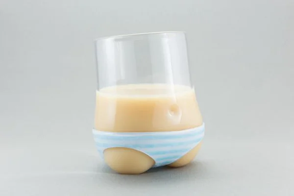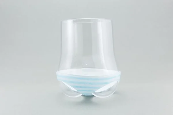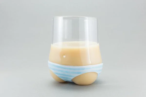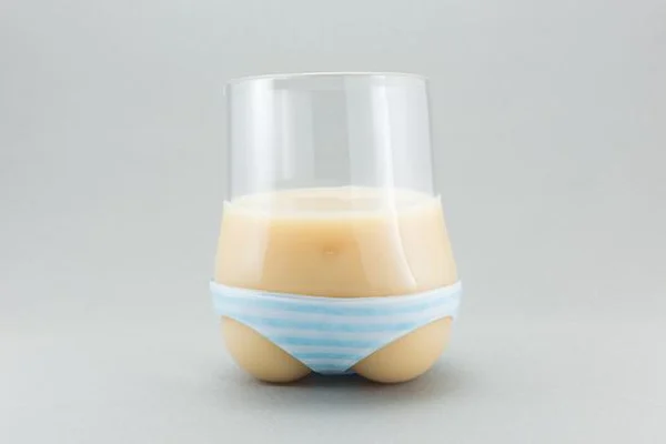 パンティを履いたグラス、パンティグラスです。無色透明のグラス部分は、カルピスを入れると白いお肌、ミルクティーを入れると焼けたお肌に早変わり。