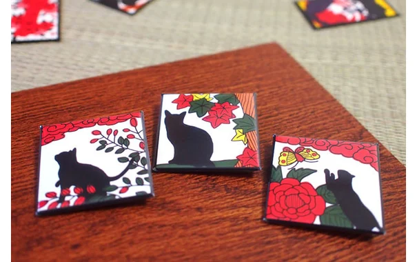 花札×黒猫が粋で可愛い♪「ねこふだ」缶バッジセット!