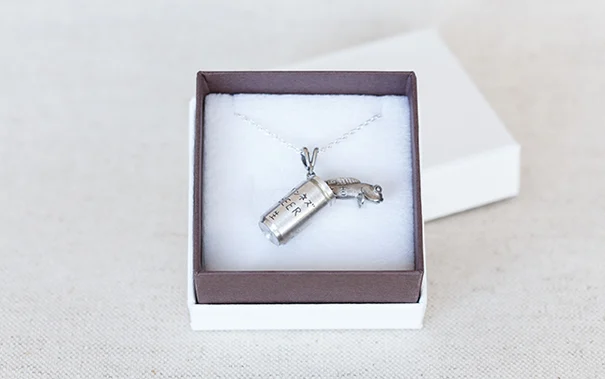 まるでおみくじのような、ユニークな仕掛けを楽しめるペンダントです。