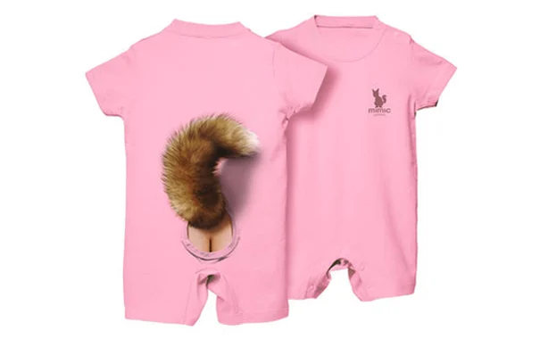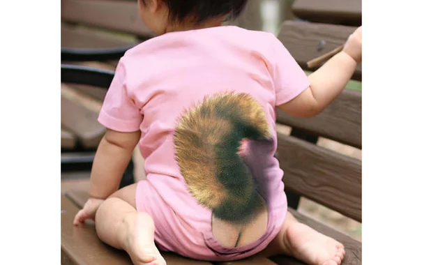 上手にヒトの子を装っているけれど、お尻と尻尾が丸見えで…。