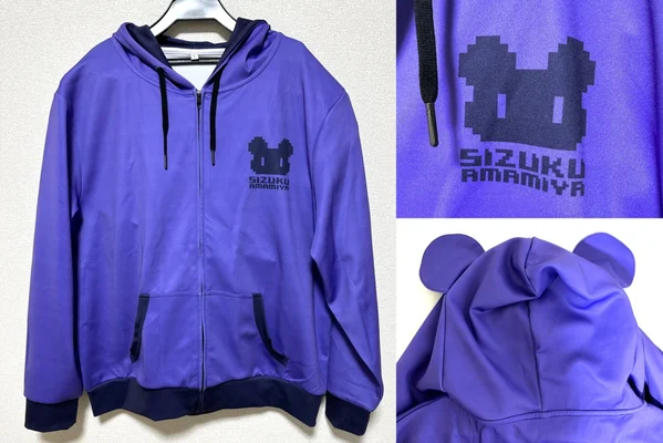 背面はイラスト・耳付き/前面は胸にワンポイントのシンプルデザインですが、ジッパーを開けると懐に小動物(系お嬢様とその親友)が潜んでいる楽しいデザインになってます☆