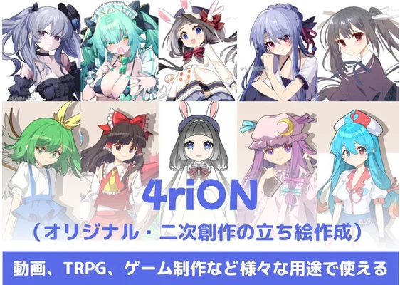 動画、TRPG、ゲーム制作など様々な用途でお使いいただけるオリジナル、二次創作の立ち絵を作成します。