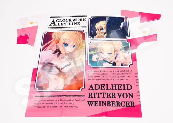 ユニゾンシフトから発売中の『時計仕掛けのレイライン』シリーズより、ヒロイン「アーデルハイト」のフルグラフィックTシャツが登場!