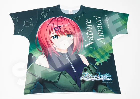 大人気PCゲーム「アンラベル・トリガー」シリーズより、ヒロインの一人、主人公カイの元恋人(おさななじみ)の雨織ナトレをあしらったフルグラフィックTシャツが登場。