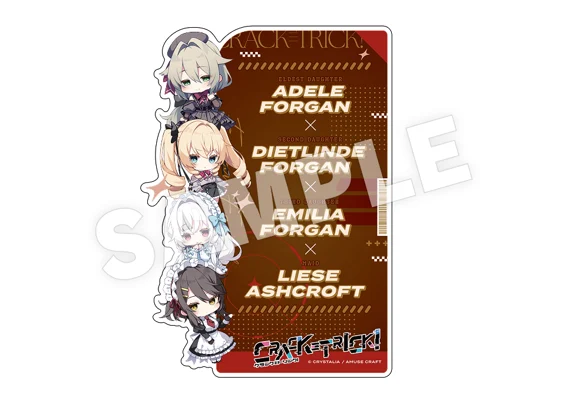 CRYSTALiAから発売中の「CRACK≡TRICK!」より、物語の舞台フォルガン家の屋敷に住まう3姉妹、アデーレ&ディートリンデ&エミーリアとメイドのリーゼのSDキャラクターを使用したアクリル本立てが登場。
