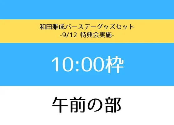 [{"skus":[{"UnitPriceWithTax":12000.0000,"isGachaTicket":false,"before":false,"within":true,"hasStock":false,"id":5856,"gtm":{"ecommerce":{"items":[{"quantity":1,"price":12000,"item_variant":"【午前の部】10:00枠","item_category":null,"item_brand":"creator/043","item_name":"【午前の部】10:00枠 和田雅成バースデーグッズセット 2026","item_id":"C-N1-C216-034"}]},"event":"add_to_cart"},"buyableQty":null,"skuImageUrlx2":"https://cdn.cbpaas.net/dwango.jpstore/assets/products/C-N1-C216-034/img.jpg?_rc=998&type=img&fit=contain&width=1210&height=800 x2","skuImageUrl":"https://cdn.cbpaas.net/dwango.jpstore/assets/products/C-N1-C216-034/img.jpg?_rc=998&type=img&fit=contain&width=605&height=400","namePart3":null}],"areaLabel":"【午前の部】10:00枠","externalId2":"通常販売:1","namePart2":"【午前の部】10:00枠"},{"skus":[{"UnitPriceWithTax":12000.0000,"isGachaTicket":false,"before":false,"within":true,"hasStock":false,"id":5857,"gtm":{"ecommerce":{"items":[{"quantity":1,"price":12000,"item_variant":"【午前の部】10:15枠","item_category":null,"item_brand":"creator/043","item_name":"【午前の部】10:15枠 和田雅成バースデーグッズセット 2026","item_id":"C-N1-C216-035"}]},"event":"add_to_cart"},"buyableQty":null,"skuImageUrlx2":"https://cdn.cbpaas.net/dwango.jpstore/assets/products/C-N1-C216-035/img.jpg?_rc=998&type=img&fit=contain&width=1210&height=800 x2","skuImageUrl":"https://cdn.cbpaas.net/dwango.jpstore/assets/products/C-N1-C216-035/img.jpg?_rc=998&type=img&fit=contain&width=605&height=400","namePart3":null}],"areaLabel":"【午前の部】10:15枠","externalId2":"通常販売:1","namePart2":"【午前の部】10:15枠"},{"skus":[{"UnitPriceWithTax":12000.0000,"isGachaTicket":false,"before":false,"within":true,"hasStock":false,"id":5858,"gtm":{"ecommerce":{"items":[{"quantity":1,"price":12000,"item_variant":"【午前の部】10:30枠","item_category":null,"item_brand":"creator/043","item_name":"【午前の部】10:30枠 和田雅成バースデーグッズセット 2026","item_id":"C-N1-C216-036"}]},"event":"add_to_cart"},"buyableQty":null,"skuImageUrlx2":"https://cdn.cbpaas.net/dwango.jpstore/assets/products/C-N1-C216-036/img.jpg?_rc=998&type=img&fit=contain&width=1210&height=800 x2","skuImageUrl":"https://cdn.cbpaas.net/dwango.jpstore/assets/products/C-N1-C216-036/img.jpg?_rc=998&type=img&fit=contain&width=605&height=400","namePart3":null}],"areaLabel":"【午前の部】10:30枠","externalId2":"通常販売:1","namePart2":"【午前の部】10:30枠"},{"skus":[{"UnitPriceWithTax":12000.0000,"isGachaTicket":false,"before":false,"within":true,"hasStock":false,"id":5859,"gtm":{"ecommerce":{"items":[{"quantity":1,"price":12000,"item_variant":"【午前の部】10:45枠","item_category":null,"item_brand":"creator/043","item_name":"【午前の部】10:45枠 和田雅成バースデーグッズセット 2026","item_id":"C-N1-C216-037"}]},"event":"add_to_cart"},"buyableQty":null,"skuImageUrlx2":"https://cdn.cbpaas.net/dwango.jpstore/assets/products/C-N1-C216-037/img.jpg?_rc=998&type=img&fit=contain&width=1210&height=800 x2","skuImageUrl":"https://cdn.cbpaas.net/dwango.jpstore/assets/products/C-N1-C216-037/img.jpg?_rc=998&type=img&fit=contain&width=605&height=400","namePart3":null}],"areaLabel":"【午前の部】10:45枠","externalId2":"通常販売:1","namePart2":"【午前の部】10:45枠"},{"skus":[{"UnitPriceWithTax":12000.0000,"isGachaTicket":false,"before":false,"within":true,"hasStock":false,"id":5860,"gtm":{"ecommerce":{"items":[{"quantity":1,"price":12000,"item_variant":"【午前の部】11:00枠","item_category":null,"item_brand":"creator/043","item_name":"【午前の部】11:00枠 和田雅成バースデーグッズセット 2026","item_id":"C-N1-C216-038"}]},"event":"add_to_cart"},"buyableQty":null,"skuImageUrlx2":"https://cdn.cbpaas.net/dwango.jpstore/assets/products/C-N1-C216-038/img.jpg?_rc=998&type=img&fit=contain&width=1210&height=800 x2","skuImageUrl":"https://cdn.cbpaas.net/dwango.jpstore/assets/products/C-N1-C216-038/img.jpg?_rc=998&type=img&fit=contain&width=605&height=400","namePart3":null}],"areaLabel":"【午前の部】11:00枠","externalId2":"通常販売:1","namePart2":"【午前の部】11:00枠"},{"skus":[{"UnitPriceWithTax":12000.0000,"isGachaTicket":false,"before":false,"within":true,"hasStock":false,"id":5861,"gtm":{"ecommerce":{"items":[{"quantity":1,"price":12000,"item_variant":"【午前の部】11:15枠","item_category":null,"item_brand":"creator/043","item_name":"【午前の部】11:15枠 和田雅成バースデーグッズセット 2026","item_id":"C-N1-C216-039"}]},"event":"add_to_cart"},"buyableQty":null,"skuImageUrlx2":"https://cdn.cbpaas.net/dwango.jpstore/assets/products/C-N1-C216-039/img.jpg?_rc=998&type=img&fit=contain&width=1210&height=800 x2","skuImageUrl":"https://cdn.cbpaas.net/dwango.jpstore/assets/products/C-N1-C216-039/img.jpg?_rc=998&type=img&fit=contain&width=605&height=400","namePart3":null}],"areaLabel":"【午前の部】11:15枠","externalId2":"通常販売:1","namePart2":"【午前の部】11:15枠"},{"skus":[{"UnitPriceWithTax":12000.0000,"isGachaTicket":false,"before":false,"within":true,"hasStock":false,"id":5862,"gtm":{"ecommerce":{"items":[{"quantity":1,"price":12000,"item_variant":"【午前の部】11:30枠","item_category":null,"item_brand":"creator/043","item_name":"【午前の部】11:30枠 和田雅成バースデーグッズセット 2026","item_id":"C-N1-C216-040"}]},"event":"add_to_cart"},"buyableQty":null,"skuImageUrlx2":"https://cdn.cbpaas.net/dwango.jpstore/assets/products/C-N1-C216-040/img.jpg?_rc=998&type=img&fit=contain&width=1210&height=800 x2","skuImageUrl":"https://cdn.cbpaas.net/dwango.jpstore/assets/products/C-N1-C216-040/img.jpg?_rc=998&type=img&fit=contain&width=605&height=400","namePart3":null}],"areaLabel":"【午前の部】11:30枠","externalId2":"通常販売:1","namePart2":"【午前の部】11:30枠"},{"skus":[{"UnitPriceWithTax":12000.